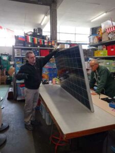 • Economie solidaire avec le don de panneaux déclassés (60) issus d’un fournisseur de kits, Oscaro- Power, prêt à s’inscrire dans un projet concret d’installation pour compléter les kits avec les composants indispensables au fonctionnement du système (systèmes de montage, les onduleurs, les protections électriques et les systèmes de supervision).