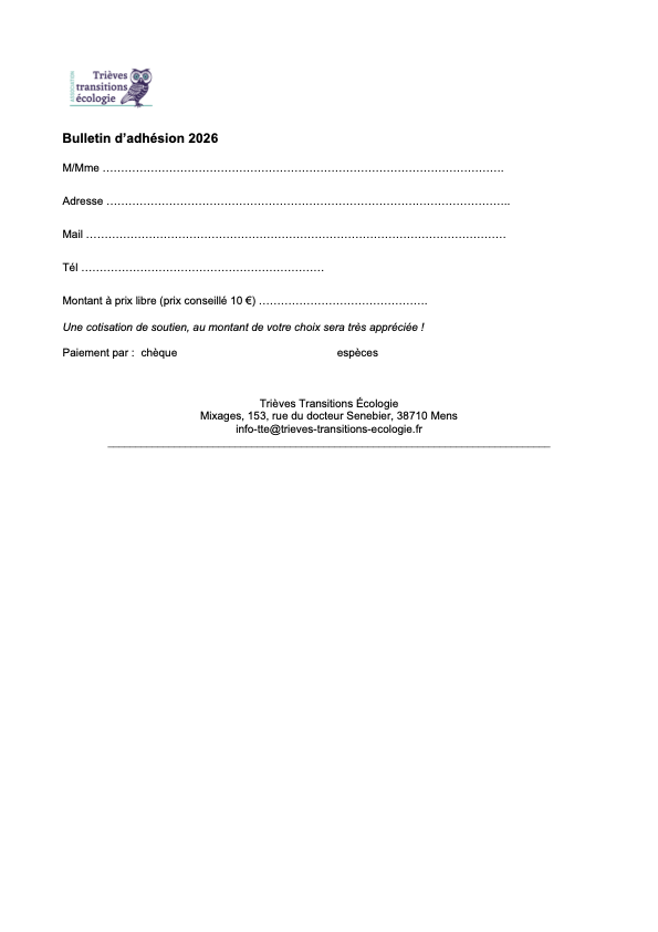 Pour adhérer à Trièves Transitions Écologie