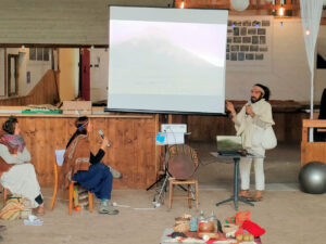 - rituel traditionnel des amérindiens Muiscas, contes et chants : un magnifique cercle. Une grande écoute. Cérémonie avec le cœur de chacun. Le message est passé… avec Buntkua, sage amérindien Muiscas de Colombie en tournée en Europe.