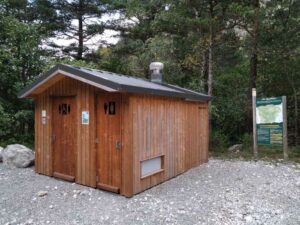 - exemple de Toilette Sèche/Lombi-compostage en service sur le parking